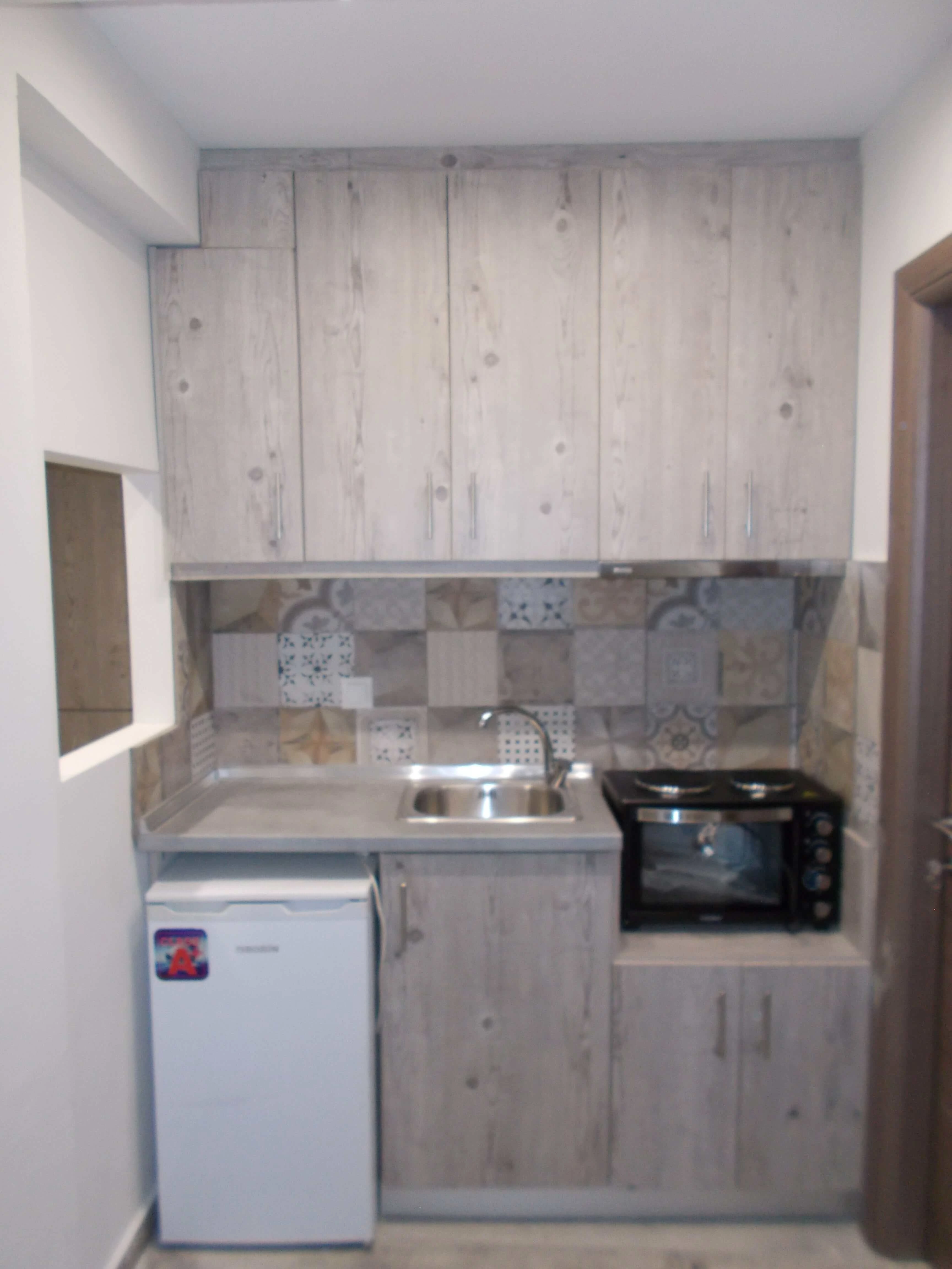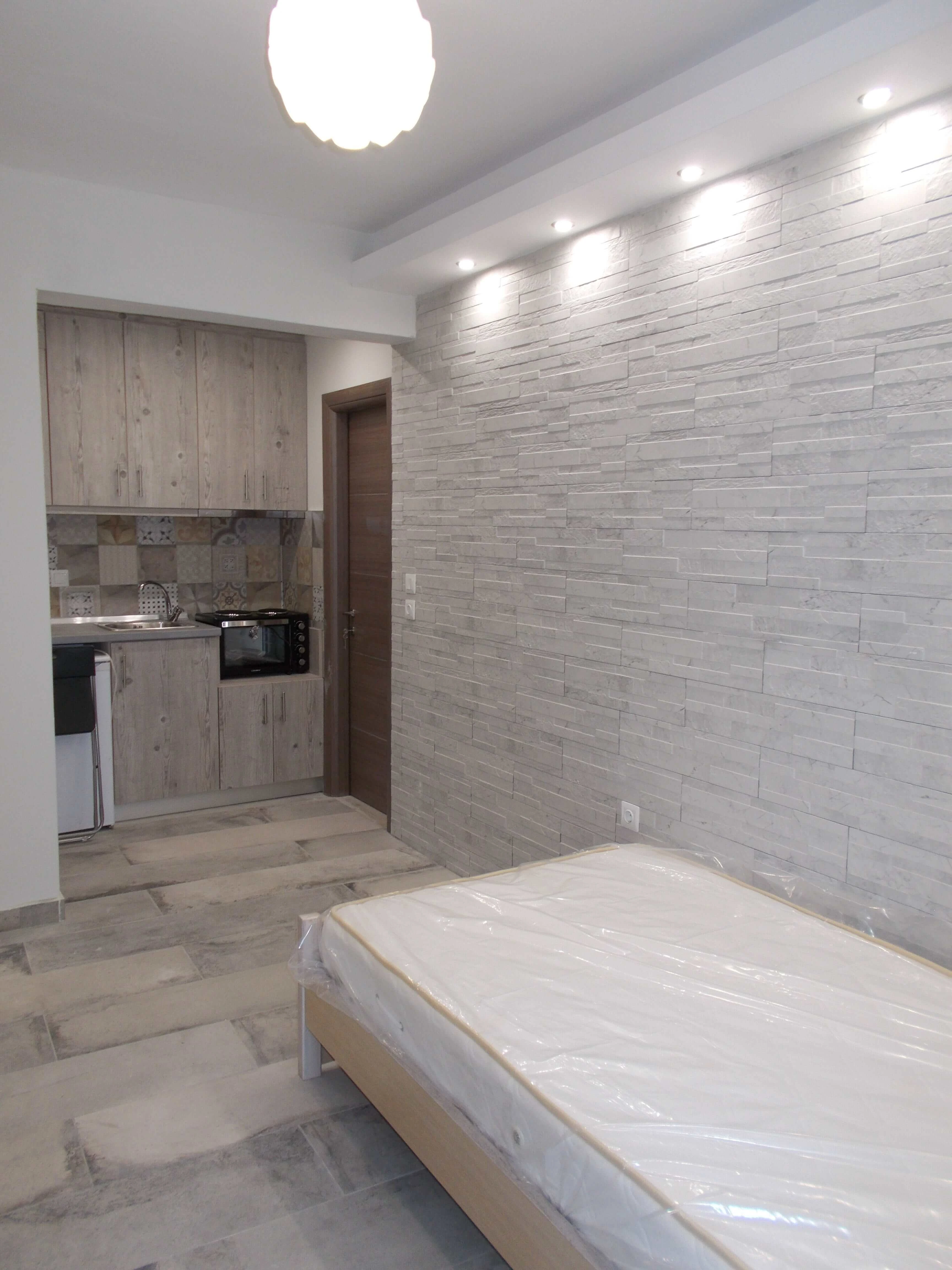 Ολική ανακαίνιση σε στούντιο 21 τ.μ. αποτελούμενο από ενιαίο χώρο υπνοδωματίου, χωλ με εντοιχισμένη ντουλάπα, κουζινάκι, μπάνιο με ντουζιέρα και μπαλκόνι.