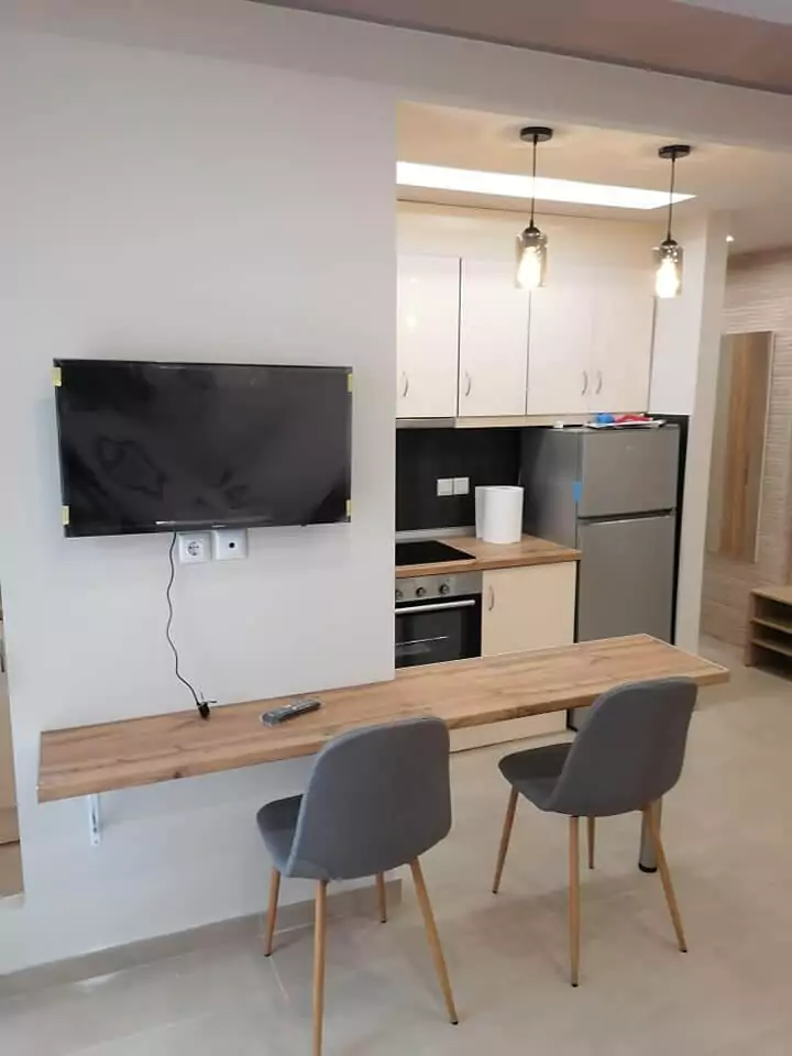 Ολική ανακαίνιση σε γκαρσονιέρα 40 τ.μ. αποτελούμενη από ενιαίο χώρο σαλονοκουζίνας, υπνοδωμάτιο, μπάνιο με ντουζιέρα και μπαλκόνια. Σε όλη την οροφή υπάρχει κατασκευή γυψοσανίδας με ταινία led και σποτάκια φωτισμού.