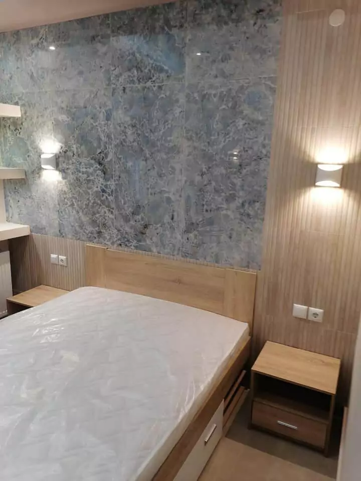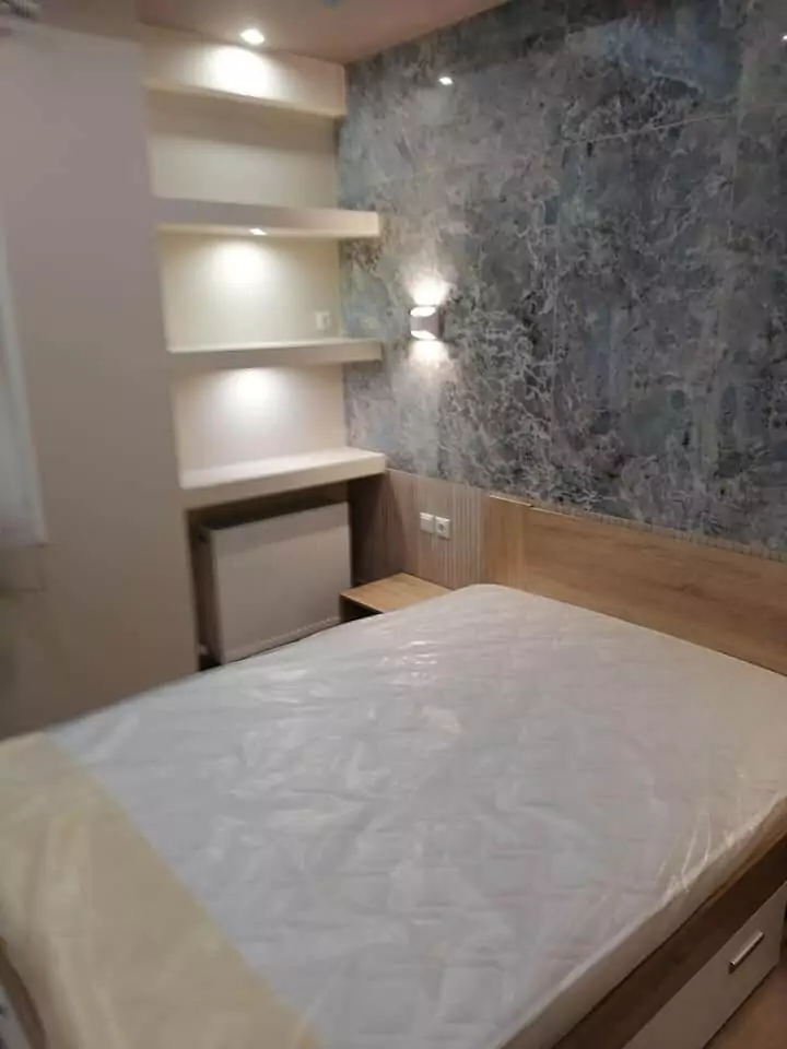 Ολική ανακαίνιση σε γκαρσονιέρα 40 τ.μ. αποτελούμενη από ενιαίο χώρο σαλονοκουζίνας, υπνοδωμάτιο, μπάνιο με ντουζιέρα και μπαλκόνια. Σε όλη την οροφή υπάρχει κατασκευή γυψοσανίδας με ταινία led και σποτάκια φωτισμού.
